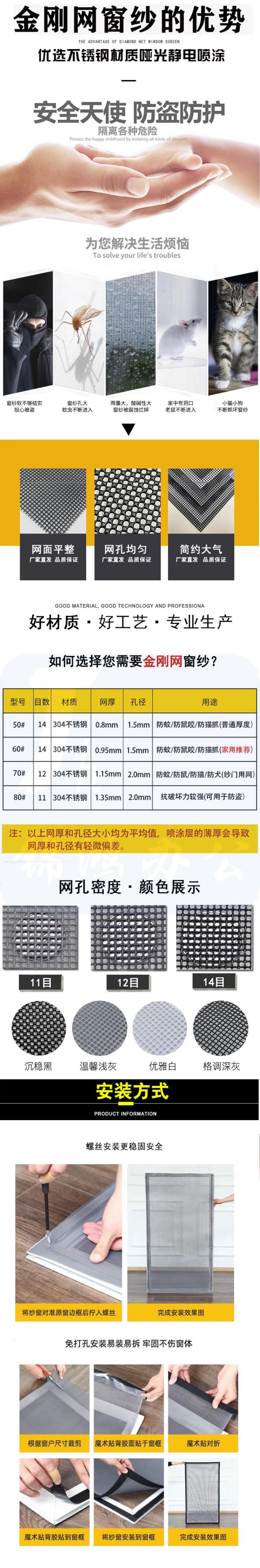 不锈钢金刚网纱窗纱 浅灰1.2*30米