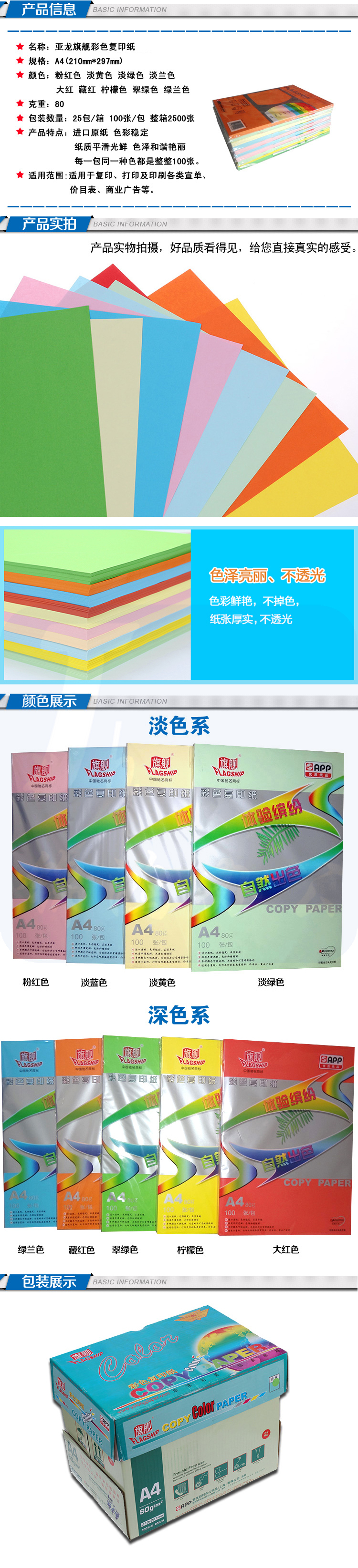 蓝色打印纸 A4 手工纸折纸 80G 100页/包