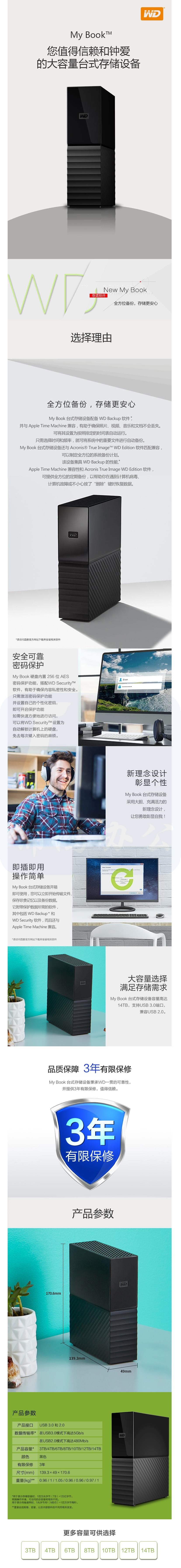 西部数据 16TB USB3.0 桌面硬盘 My Book 3.5英寸WDBBGB0160HBK