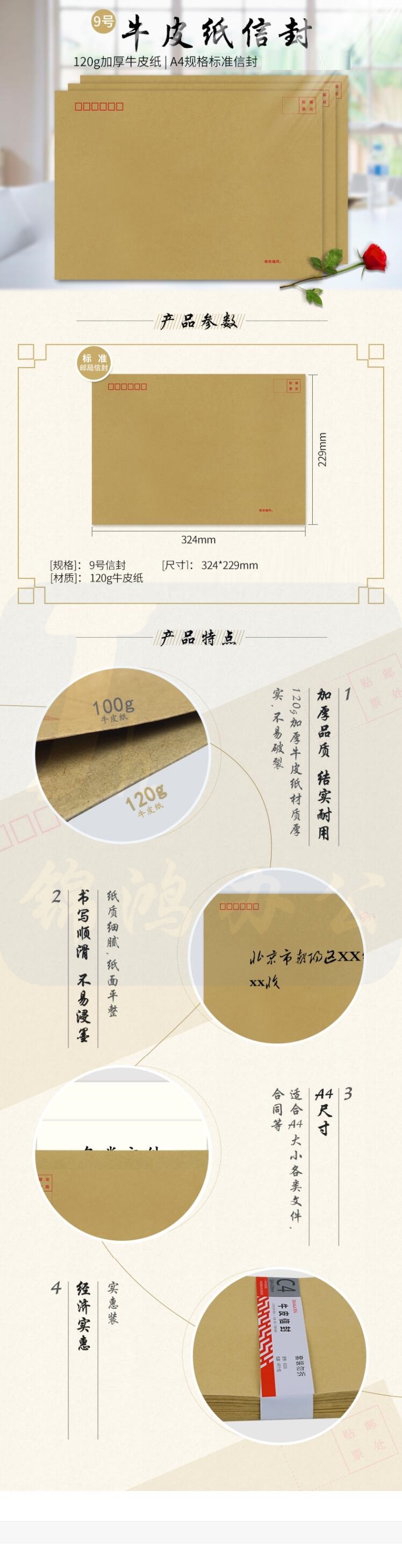 单字红字 黄色牛皮纸 牛皮纸信封324*229mm ( 2000起订) 货号:JC