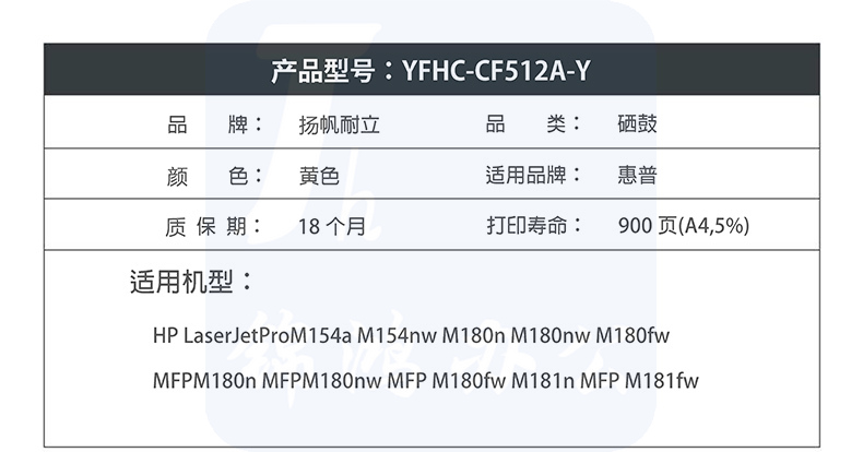 扬帆耐立YFHC CF512A(204A)黄鼓(带芯片)惠普M154/M180/M181系列