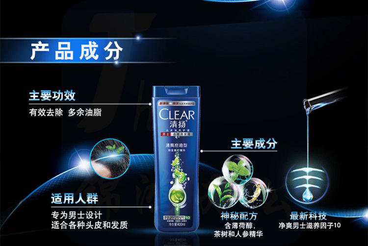 清扬 男士去屑洗发露活力运动薄荷型 400ml (12瓶/箱)