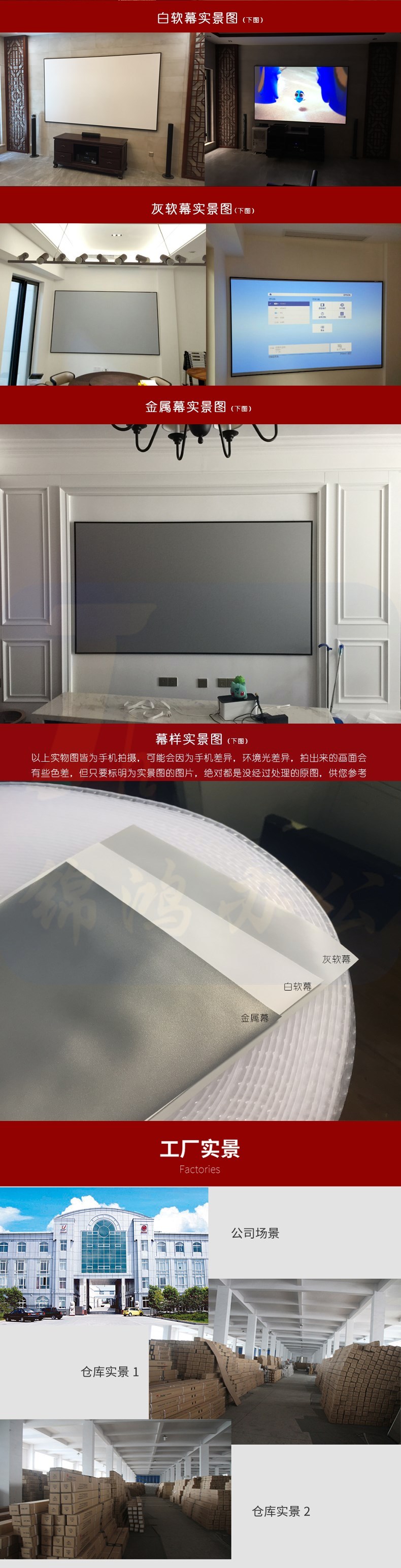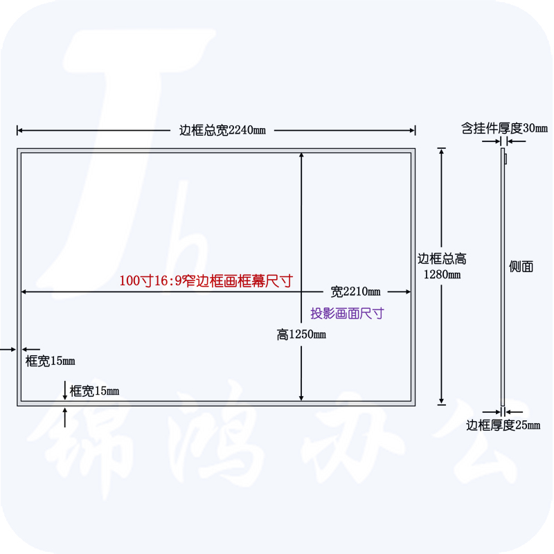 红叶(HONGYE)窄边框100寸16:9纳米高清4K&3D白软幕灰幕金属幕影院画框幕 2.21*1.25