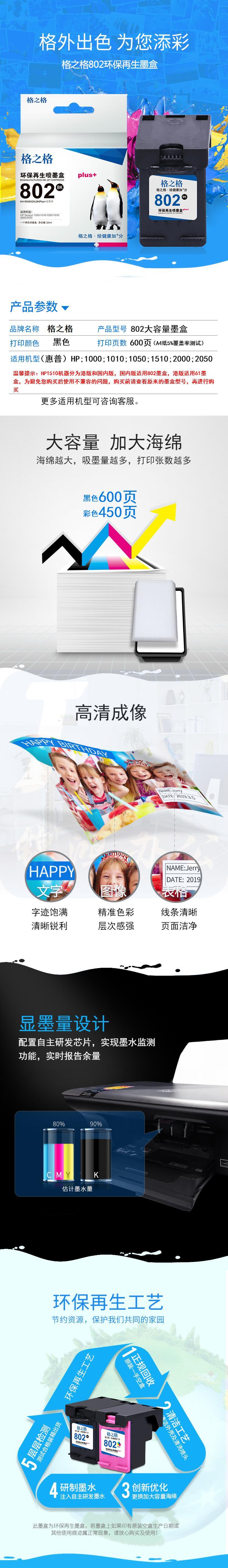 格之格 802墨水盒(黑/彩)适用于惠普1000 1010 1050 1510 2000 2050