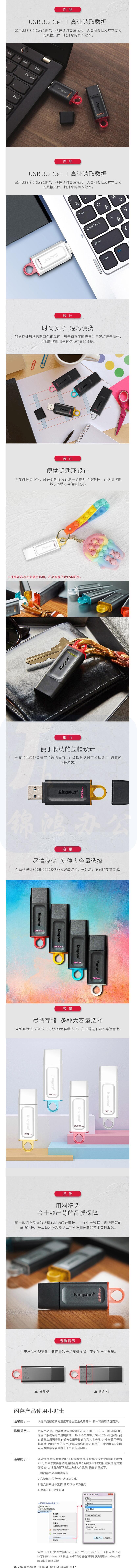 金士顿 64G U盘 USB3.2 Gen 1 DTX高速车载闪存优盘