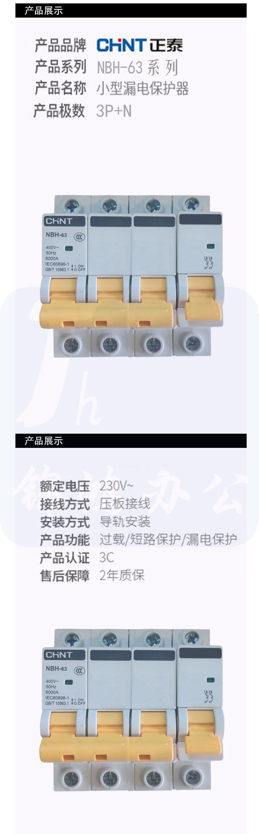 正泰(CHNT) NBH-63 3P+N D40 漏电保护器