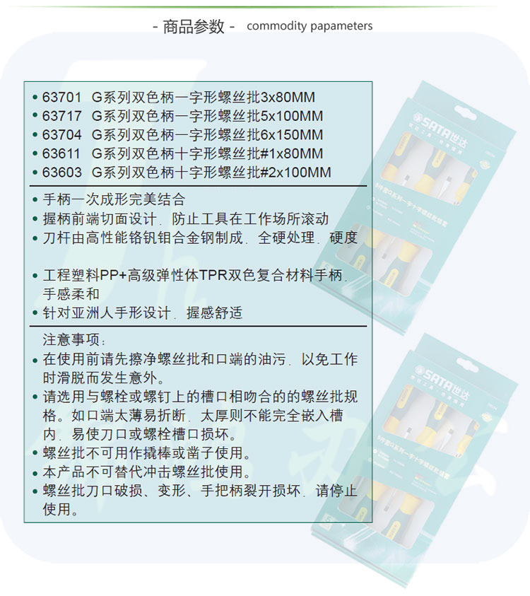 世达(SATA)5件G系列一字、十字螺丝批组套货号09334