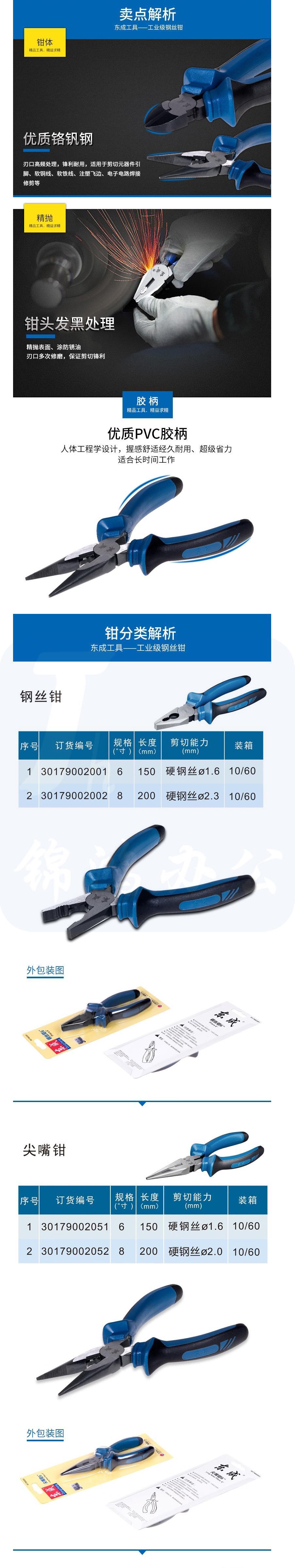 东成 手动工具尖嘴钳 斜嘴钳 尖嘴钳8寸200mm 货号:JC