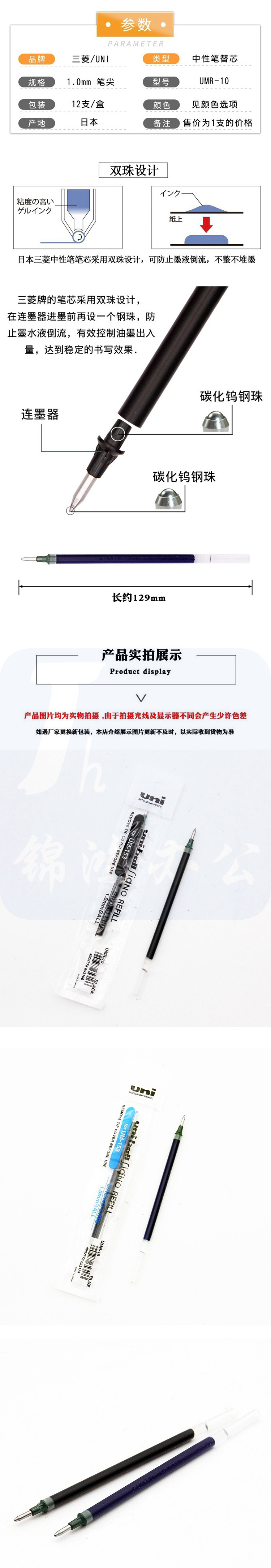 三菱 UMR-10 中性笔替芯 适用UM-153 1.0mm 黑色