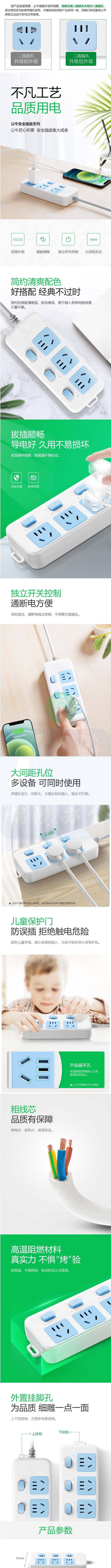 公牛 GN-314 全长3米 3位分控 插排插座移动插线板10A250V