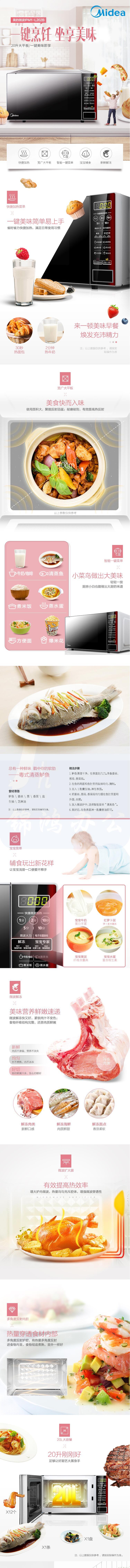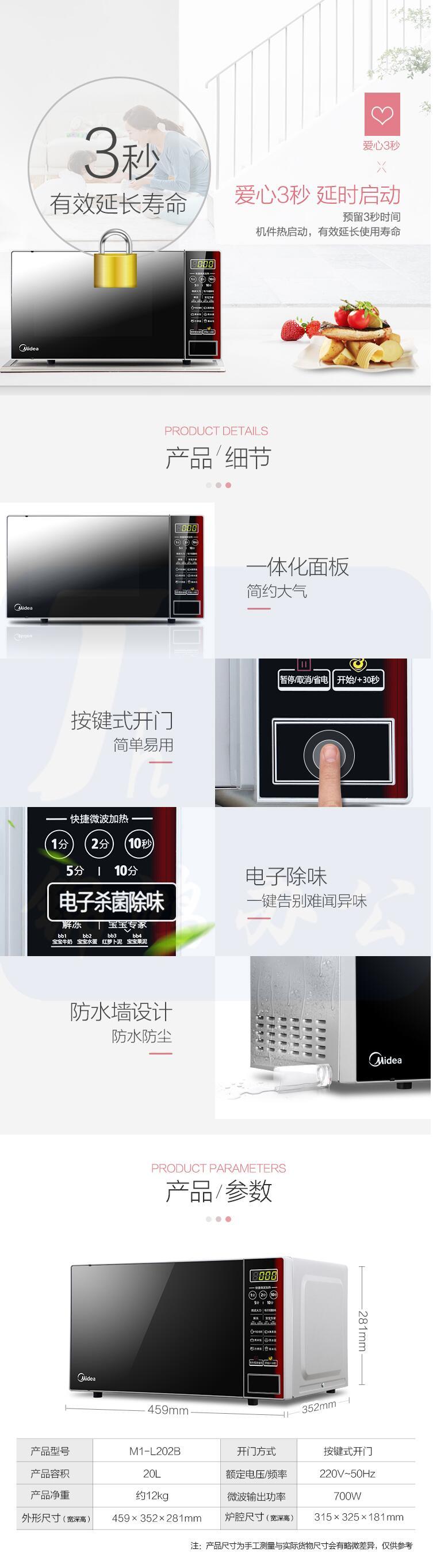 美的 20升 电子除味杀菌 快捷微波炉 平板加热一键启动 多角度反射内胆 M1-L202B
