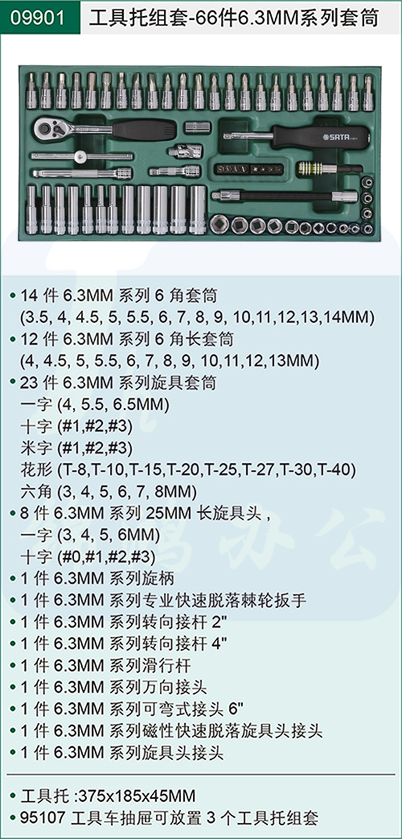 世达(SATA)工具托组套-66件6.3MM系列套筒 09901