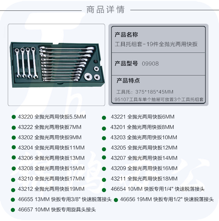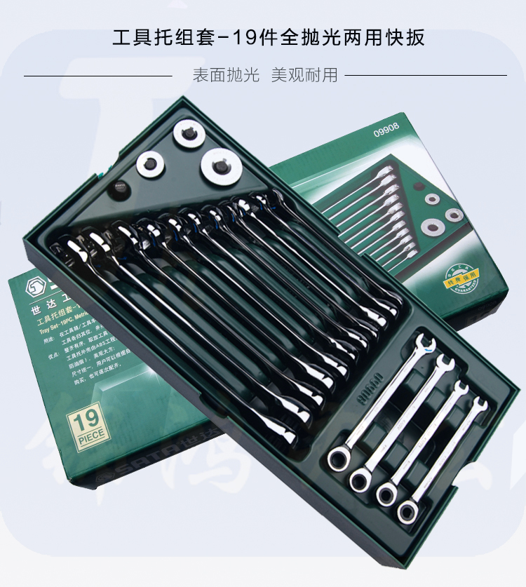 世达(SATA)工具托组套-19件全抛光两用快扳 09908