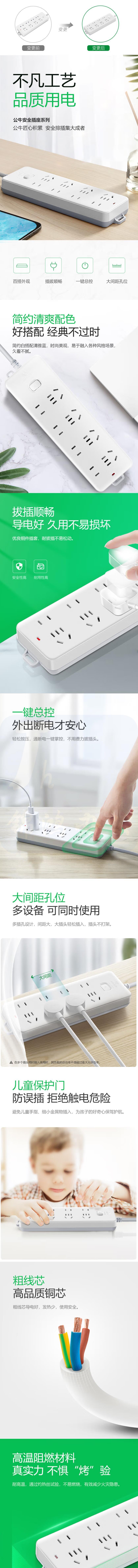 公牛 GN-403 8位总控 5米多位插座 插线板