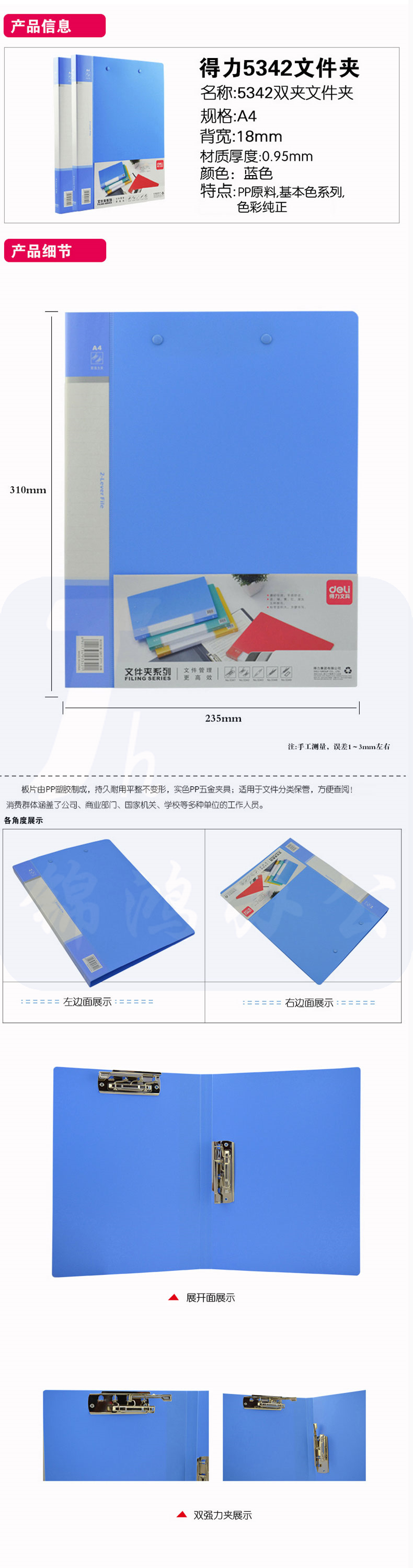 得力5342 A4文件夹 双强力夹 资料夹插页试卷夹 蓝色