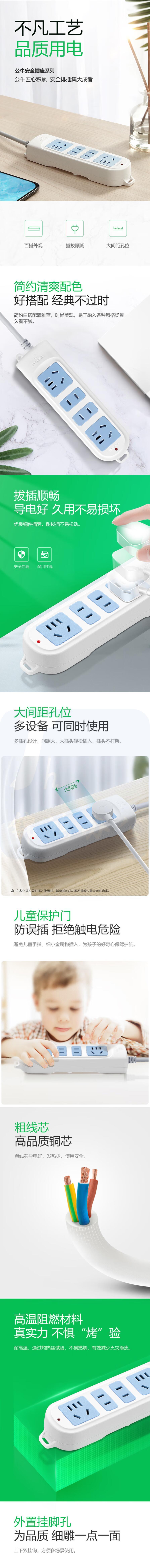公牛GN-101 1.8米接线板插排 袋 10A250V