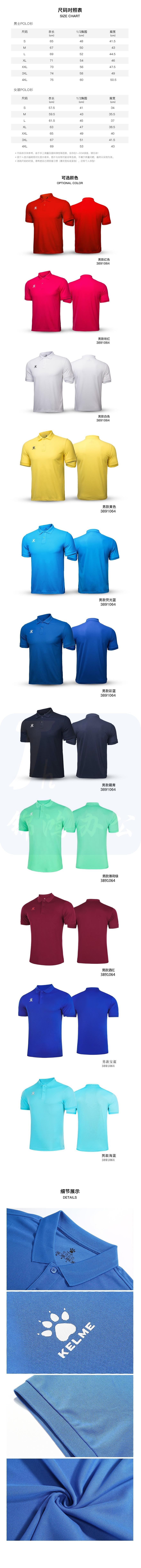 KELME /卡尔美 男士运动短袖POLO衫男款纯色商务T恤 3891064 货号:JC