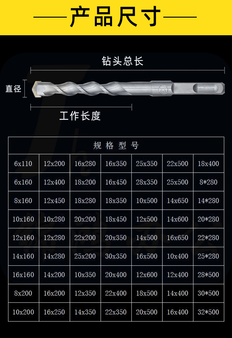 大地 6x160 方四坑电锤钻头/方柄四坑合金钻头