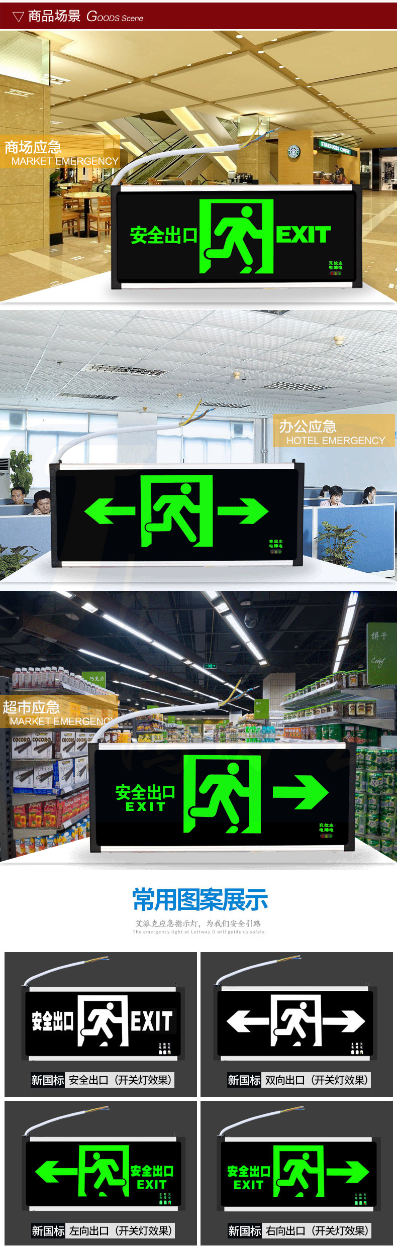 双面 D215 单向国标LED安全出口指示灯;产品尺寸:332*23*145mm
