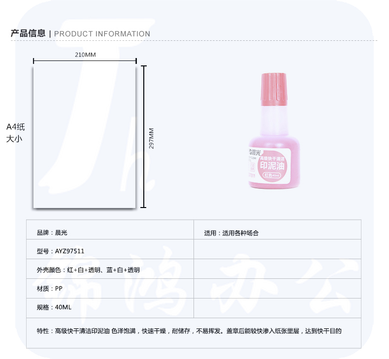 晨光 40ml财务印泥快干印油AYZ97511红