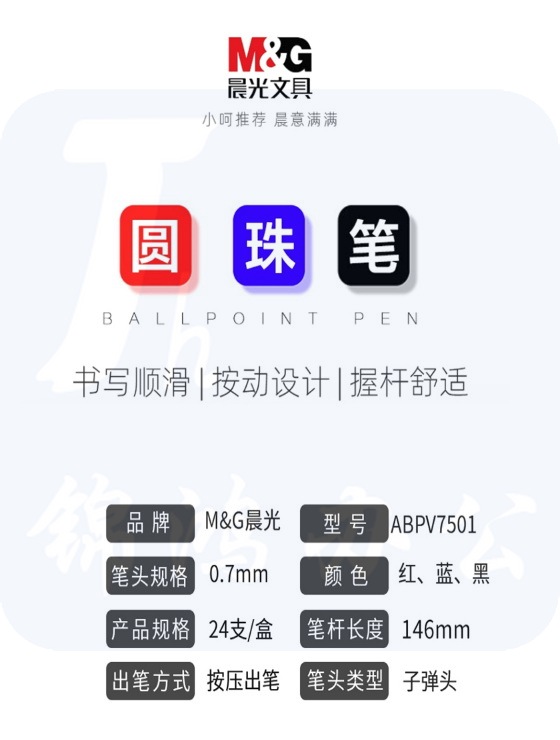 晨光 ABPV7501 晨光 0.7mm 办公圆珠笔 (24支/盒) 按支销售