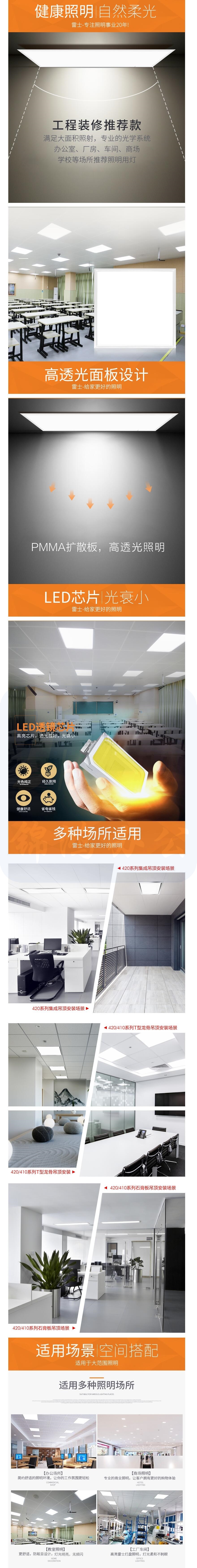 雷士照明 LED灯盘100*1200平板灯 办公室吸顶灯集成吊顶灯 正白光