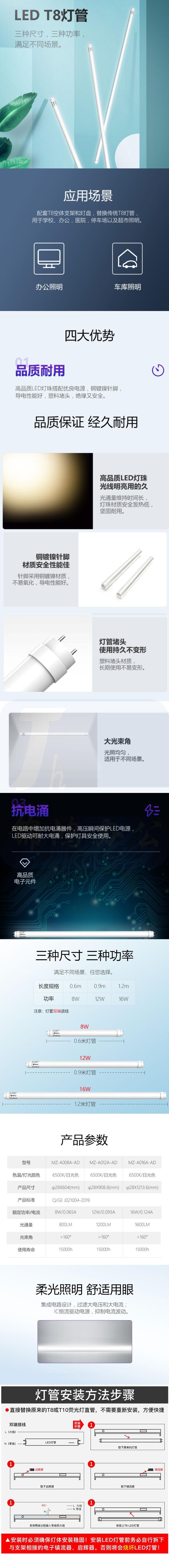 公牛LED灯管 T8- 1.2米 16W 日光灯管 6500K(25支/箱)