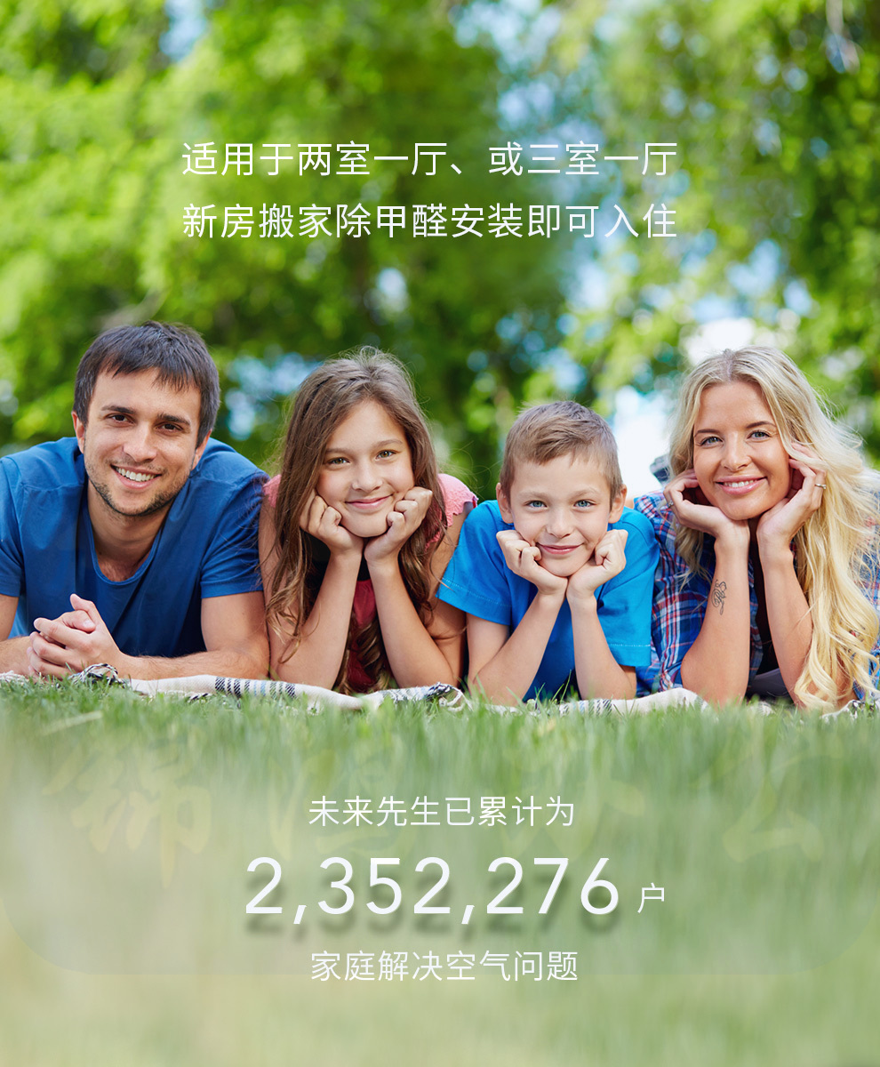 高达640m³/h的CADR值、120m³/h的新风量,每天为家灌溉280万升近三百万升的森林级空气。极速的净化能力,让每台MR.FUTURE ®未来先生适用于80平米左右的空间,每12分钟对空间彻底净化一次,顷刻间让房间仿佛置身于森林般的清新中。