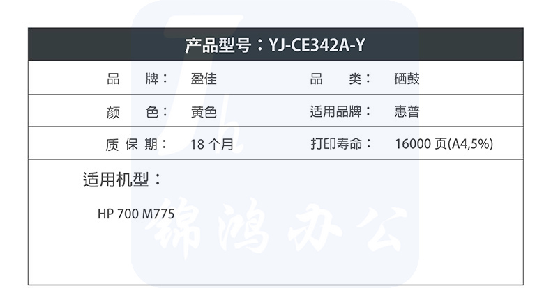 盈佳YJ CE342A(651A)黄鼓-16K(带芯片)