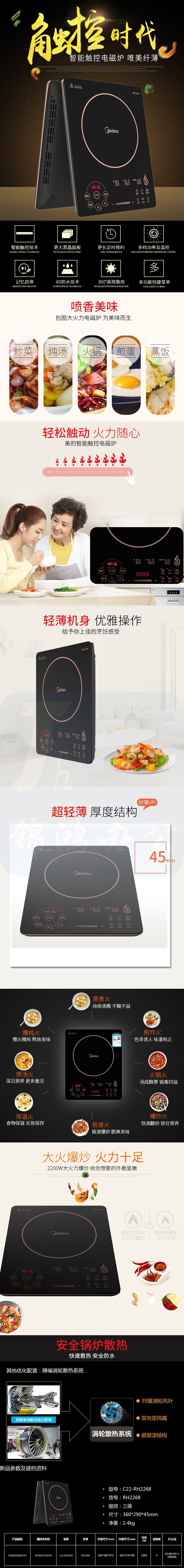 美的电磁炉家用多功能 RH2268 家用电磁炉触摸控制