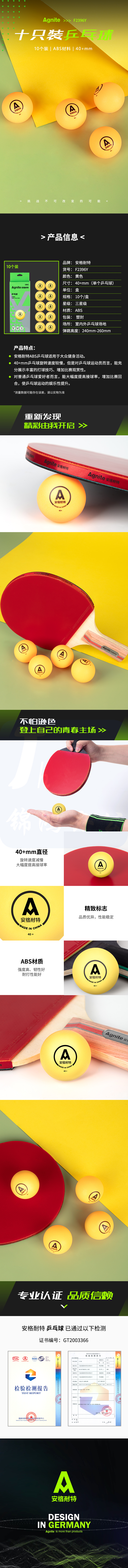 安格耐特F2396Y_10只装乒乓球(黄色)(盒)