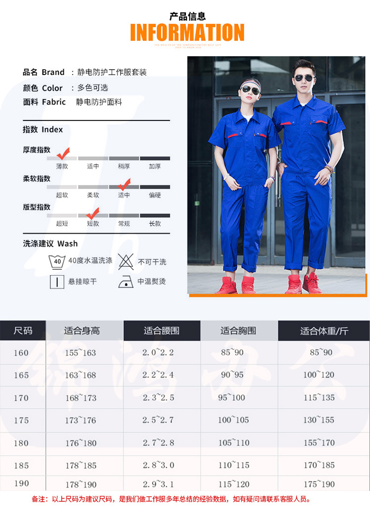 威特仕 春秋款长袖防静电工作服套装(上衣+裤子) 上衣+裤子 彩色