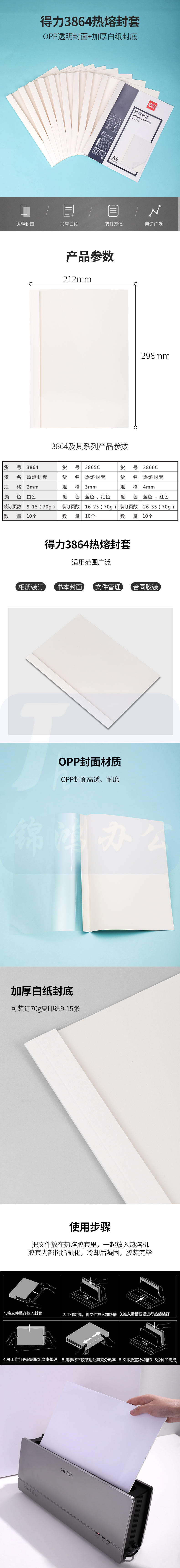 得力3864 热熔装订机专用塑料封套 A4胶装透明封面 装订纸质封皮2mm可订9-15页(10个装)