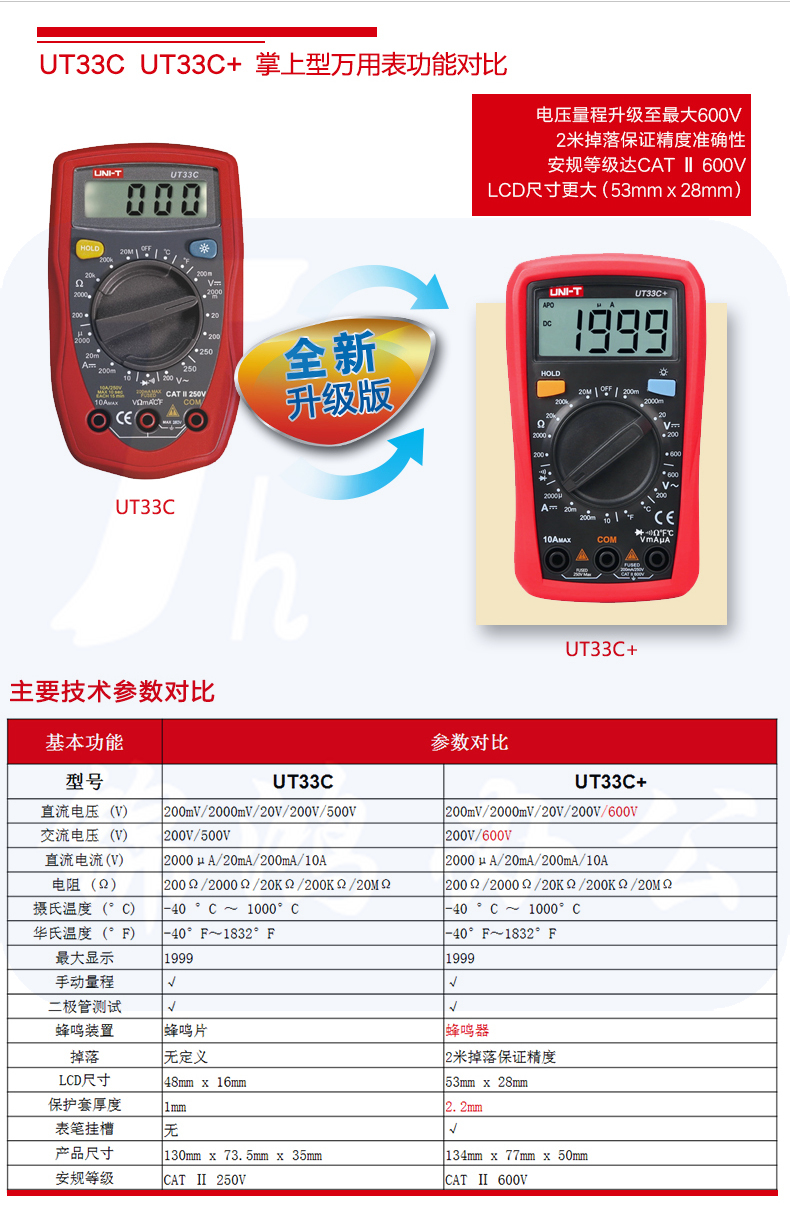 优利德(UNI-T)数字万用表UT33C+