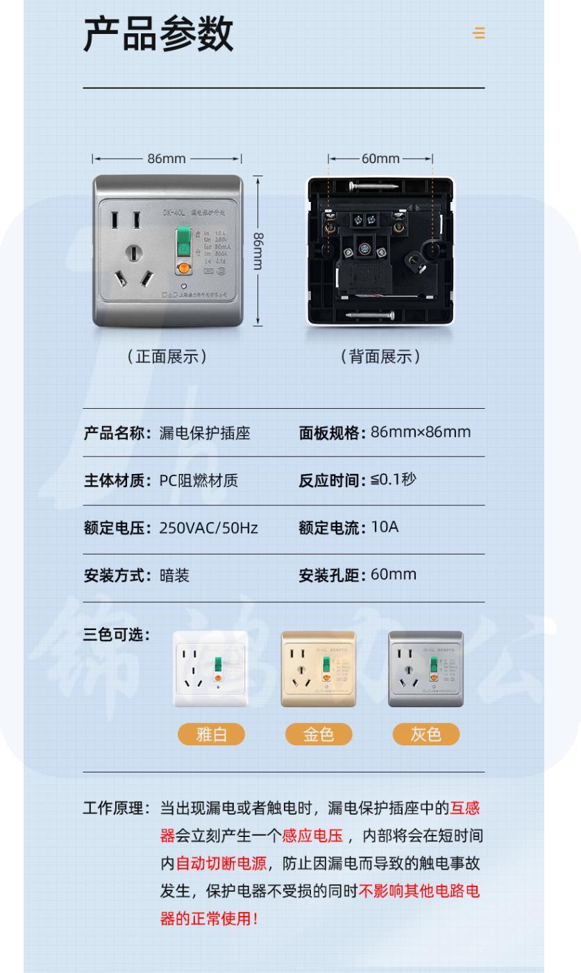 德力西 漏电保护开关 10A五孔 雅白 货号:JC