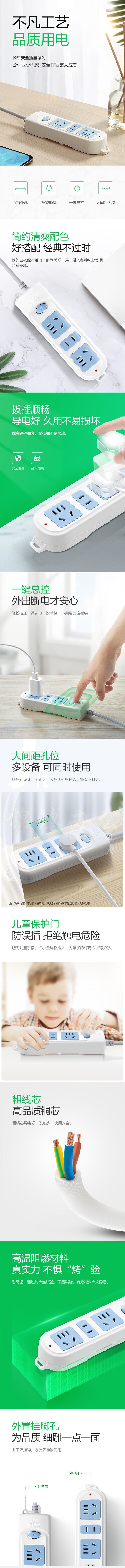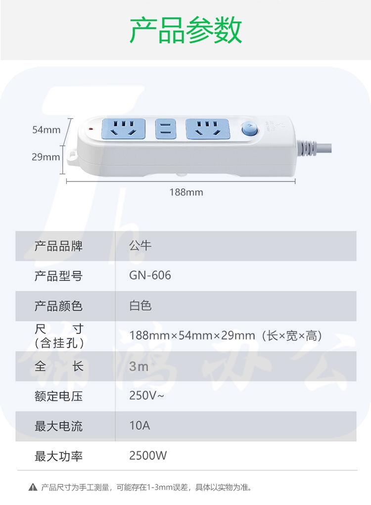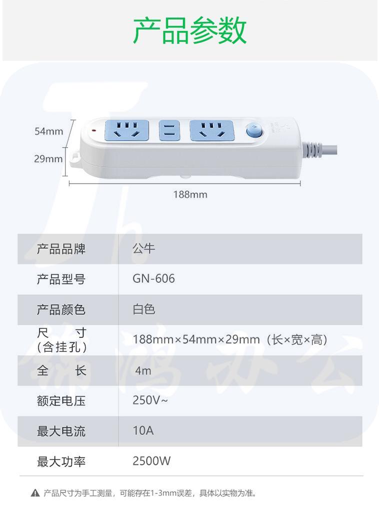 公牛 GN-606 3位总控 4米多位插座 接线板插排