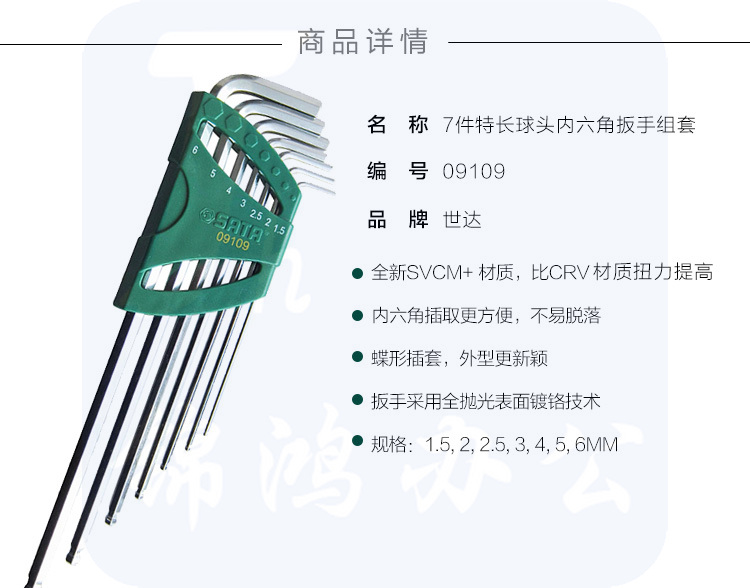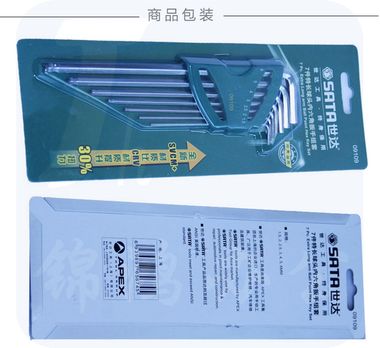 世达(SATA)7件特长球头内六角扳手组套货号09109