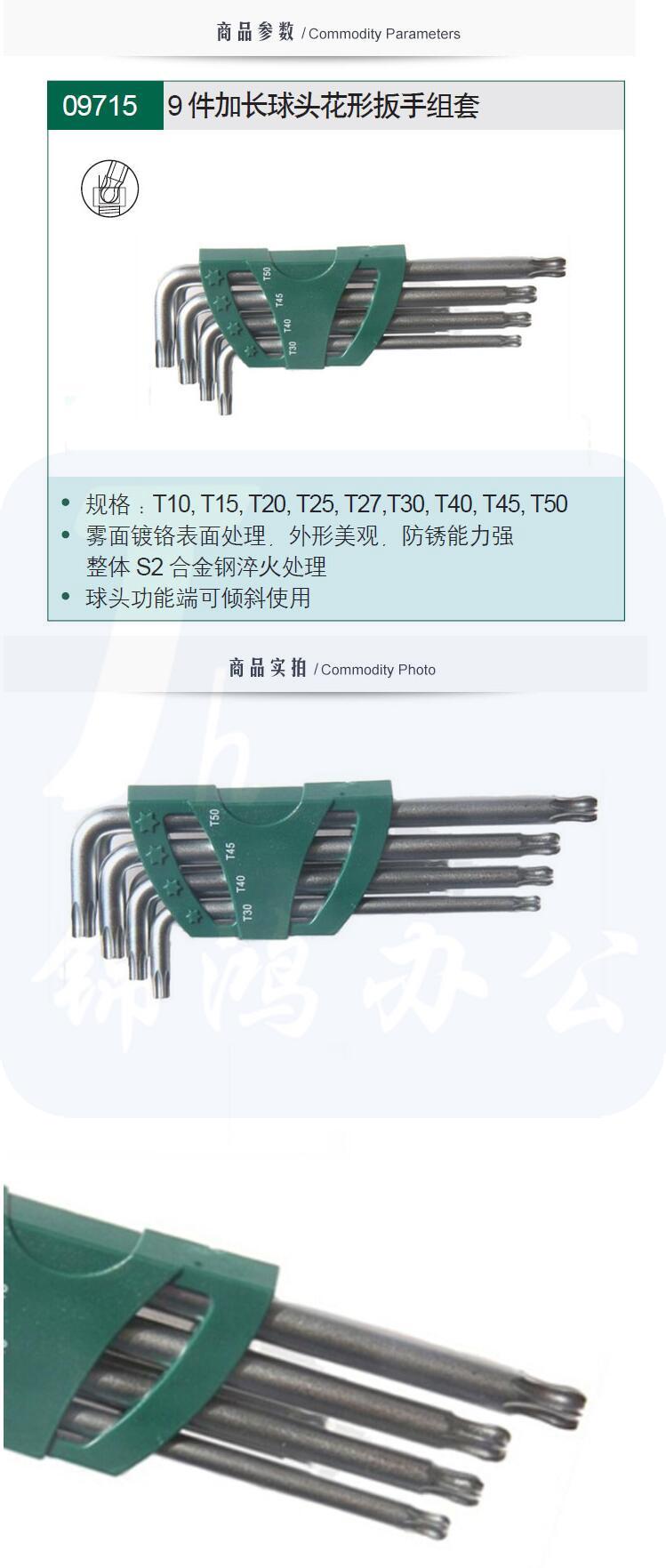 世达(SATA)9件加长球头花形扳手组套 09715
