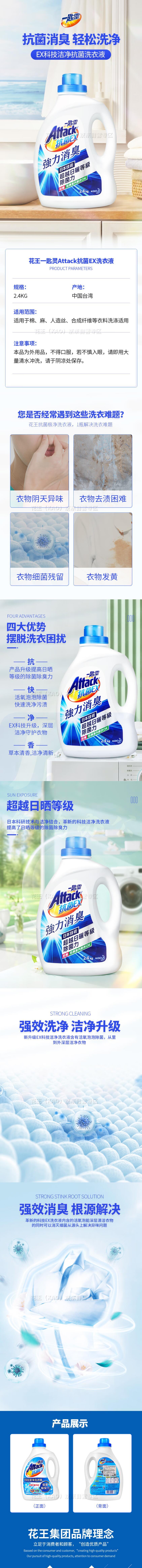 花王 2.4kg 洗衣液洗衣精 抗菌除菌内香味持久超浓缩