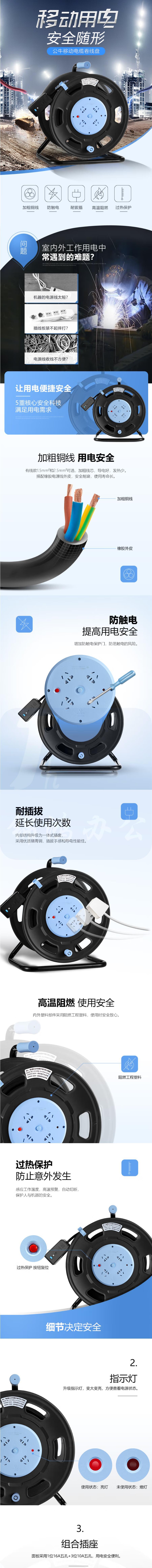 公牛 绕线器GN-806DN 30米线 2.5MM² 线轴 过热保护漏电保护16A大功率电缆卷盘插座/插排