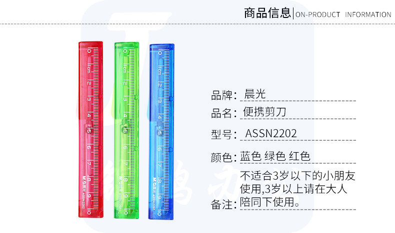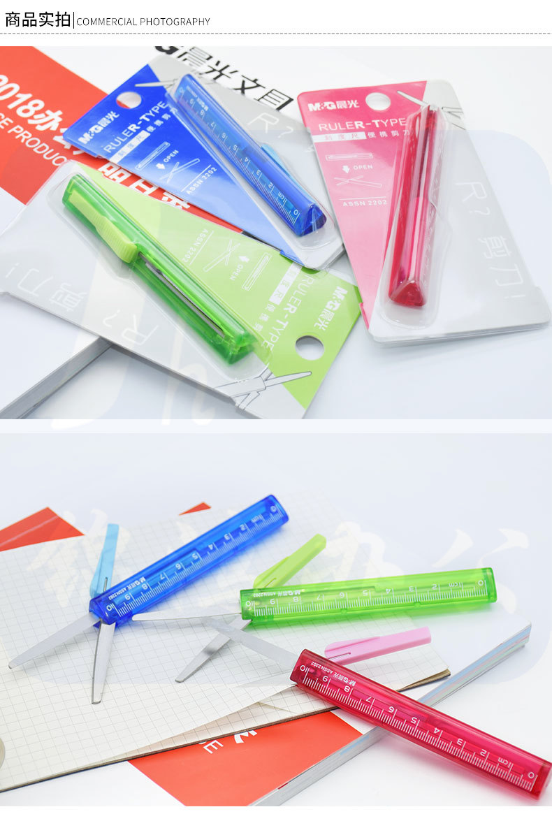 晨光(M&G)刻度尺便携剪刀 学生办公剪刀ASSN2202 红绿蓝颜色随机 一包30个装