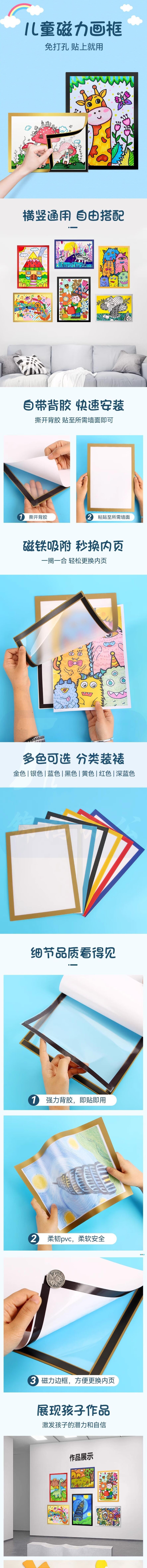 磁性画框相框贴A4广告展示贴免打孔挂墙展示框 金色