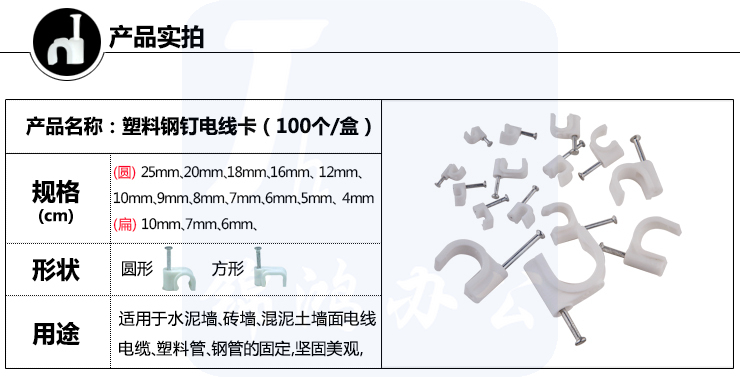 天坛 钢钉线卡 6mm扁(6#) 塑料线卡100个/盒