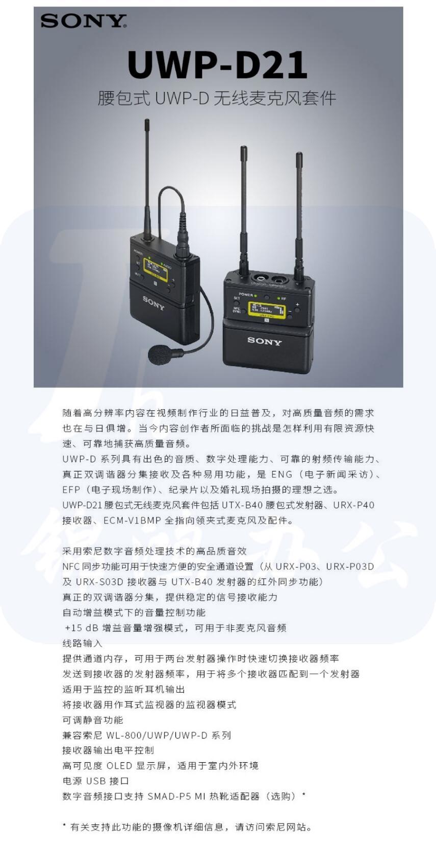 索尼 UWP-D21无线领夹麦克风小蜜蜂 货号:YC