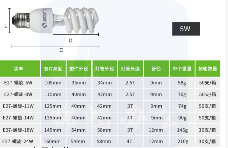 上海绿源 三基色电子节能灯 5W E27 货号:LJ