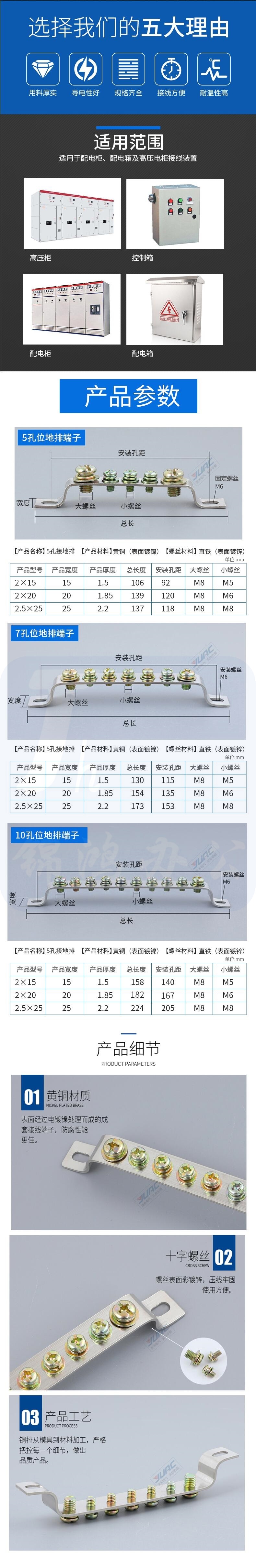 零线接地排10位 配电柜接地排零地线端子 货号:XH