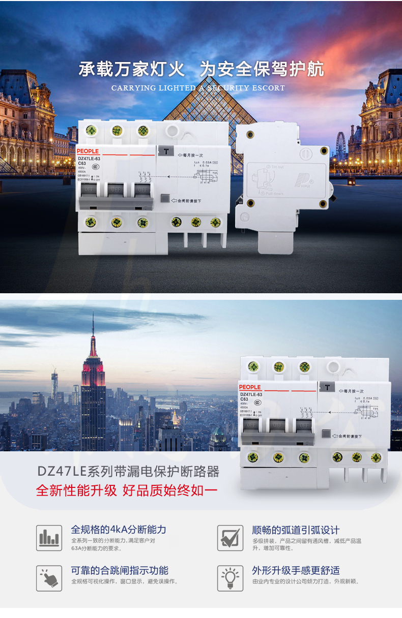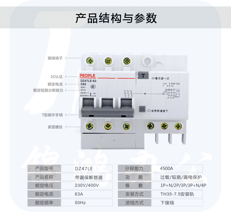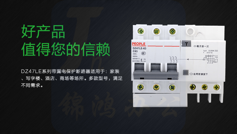人民电器 DZ47LE 3P-63A小型漏电断路器