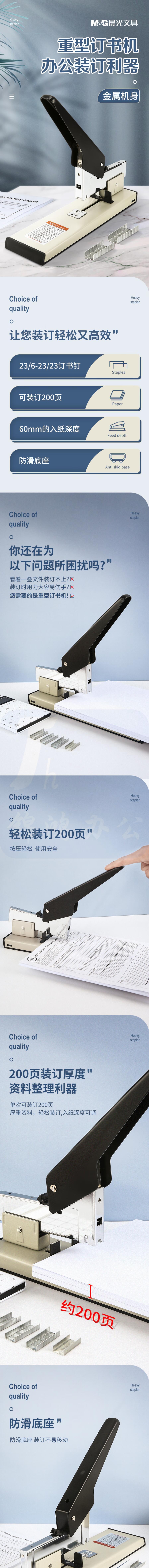 晨光 200页重型订书机/订书器 适配23/6~23/23订书钉 ABSN2654
