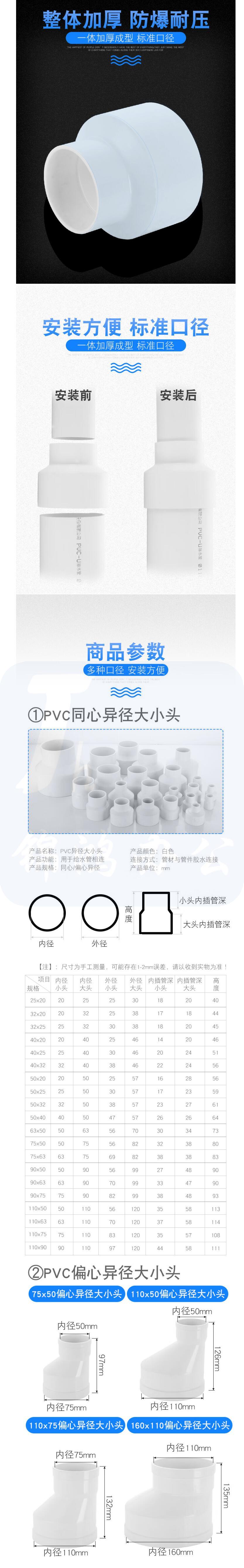 PVC大小头异变径接头 160*110 货号:JC