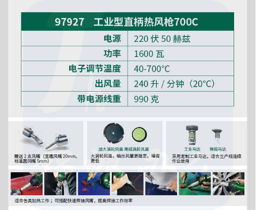 世达(SATA)工业型直柄热风枪700 °C 97927